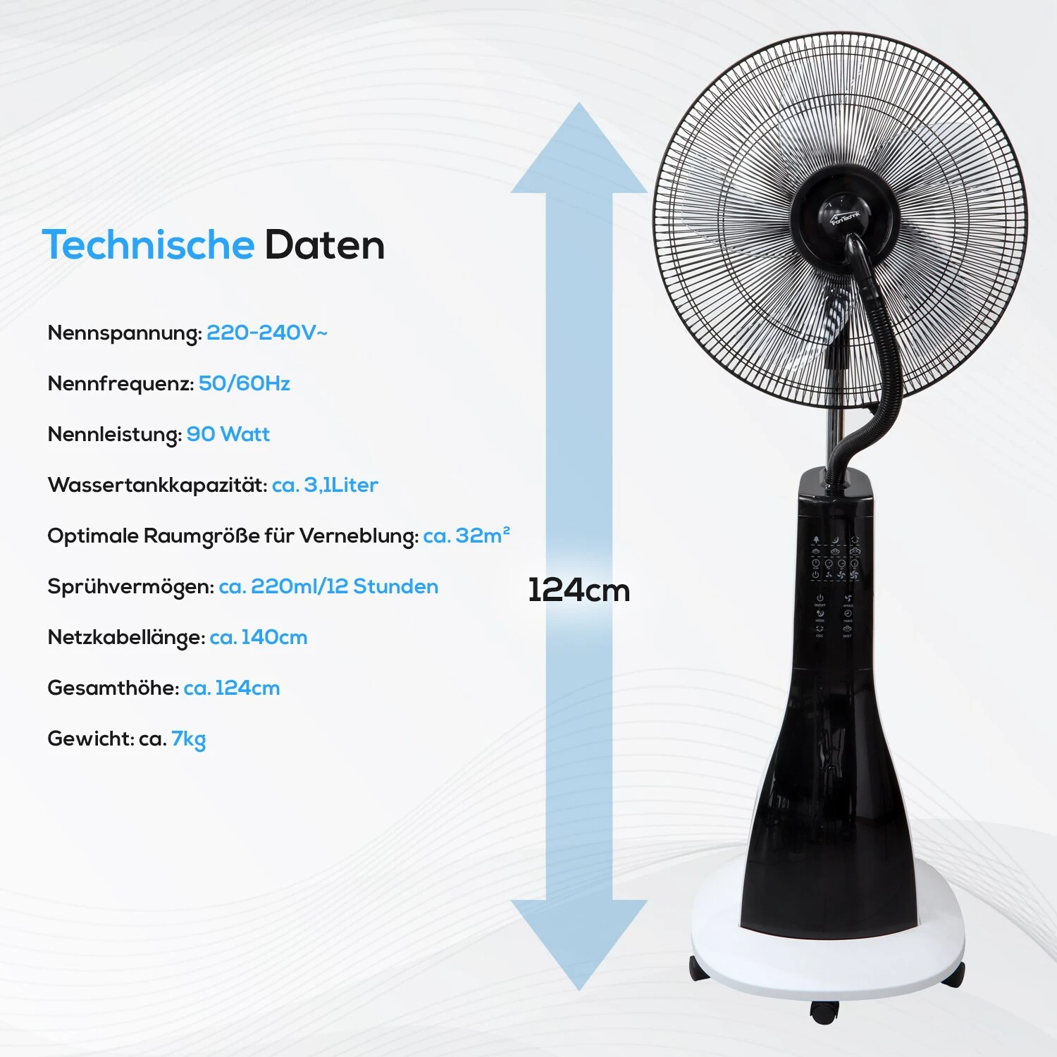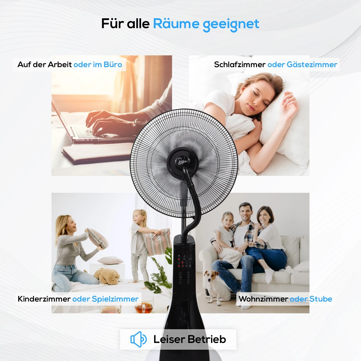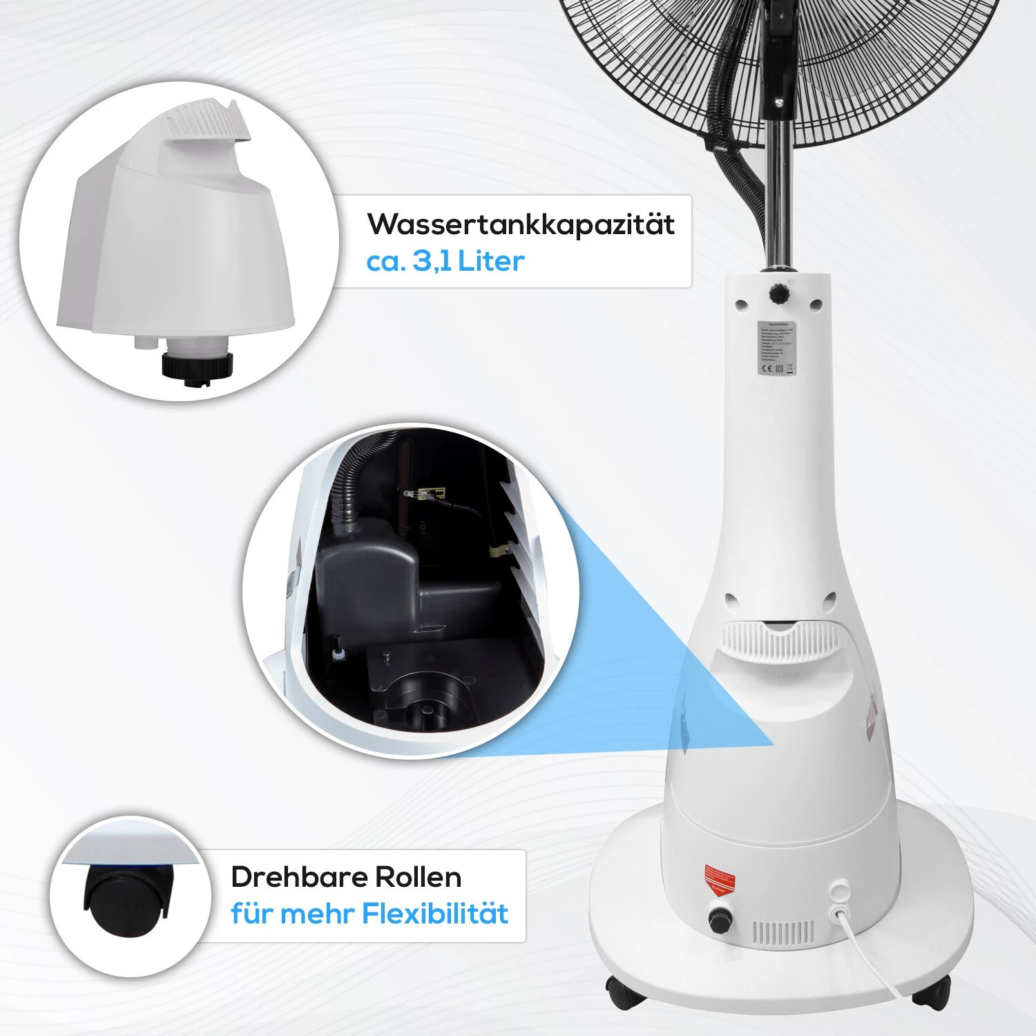 Durch diese Verneblung wirkt die bewegte Luft deutlich kühler auf der Haut und sorgt die optimale Kühlung im Sommer.