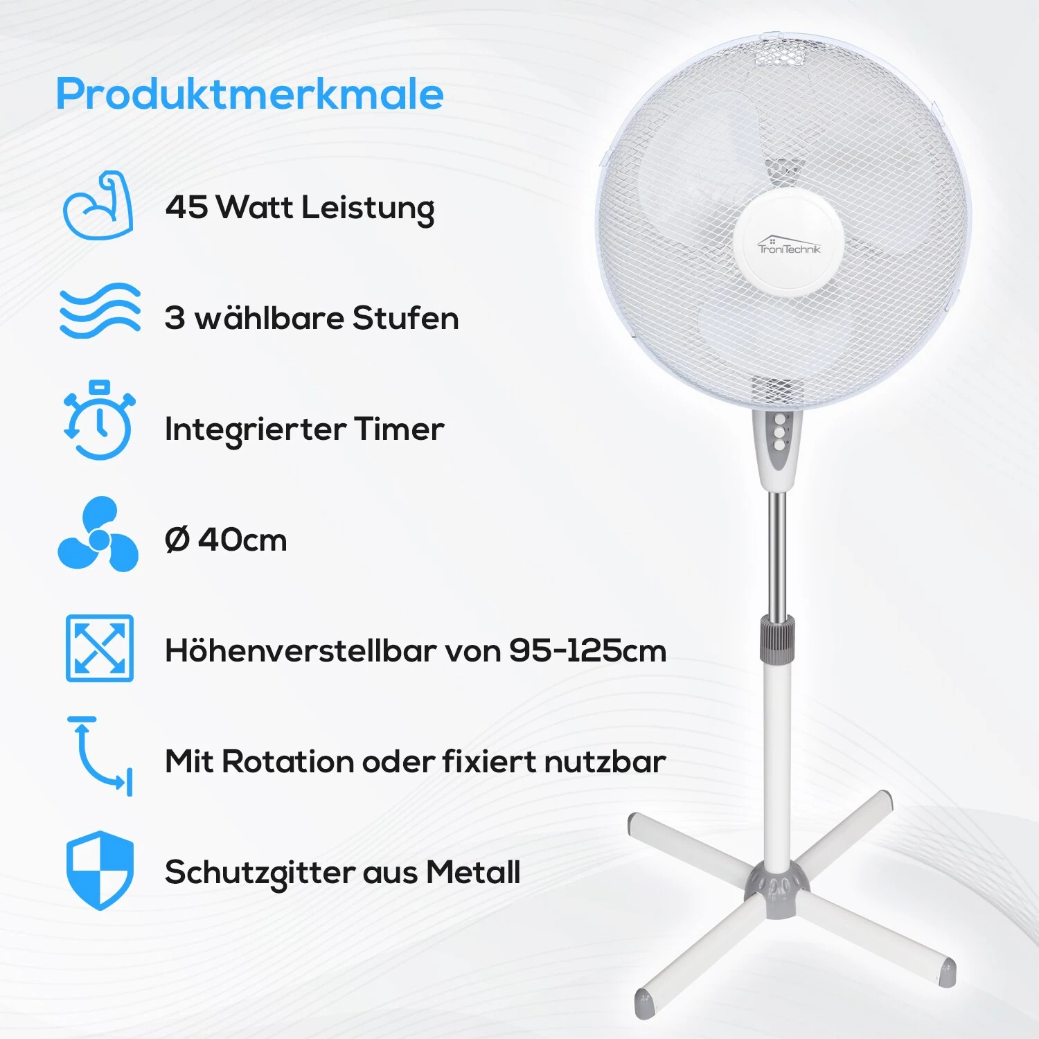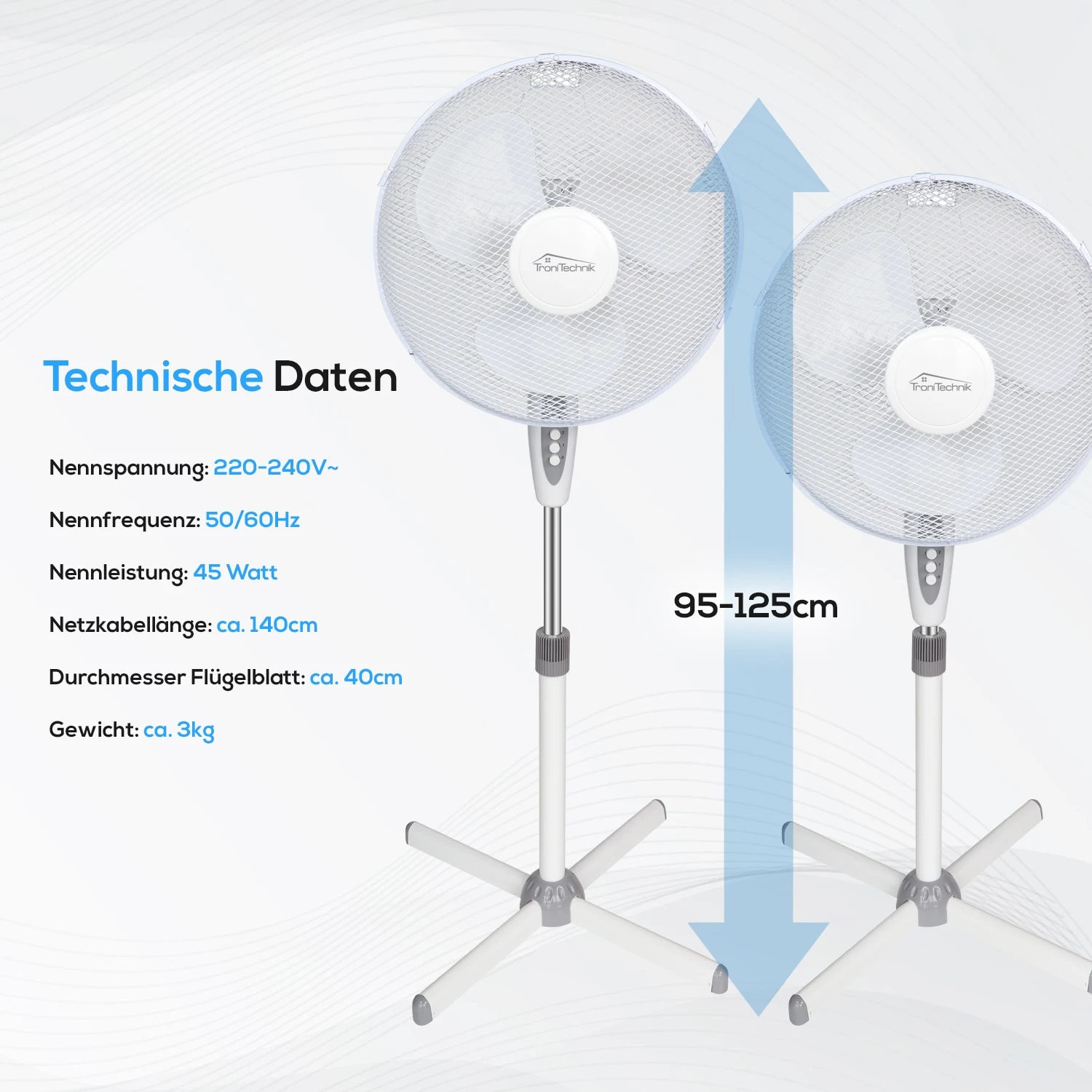 Durch die Höhenverstellbarkeit (95-125cm) und die Möglichkeit zur Oszillation und Fixierung haben Sie alle Bereiche des Hauses oder des Büros spielend leicht belüftet.
