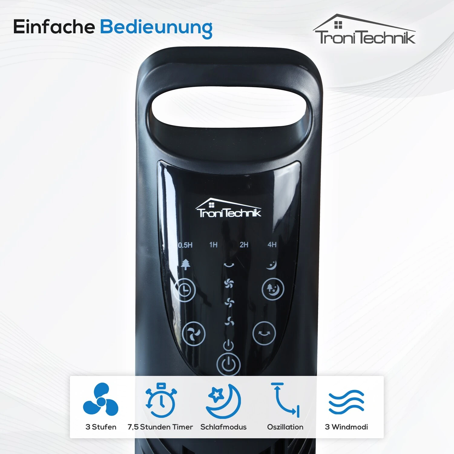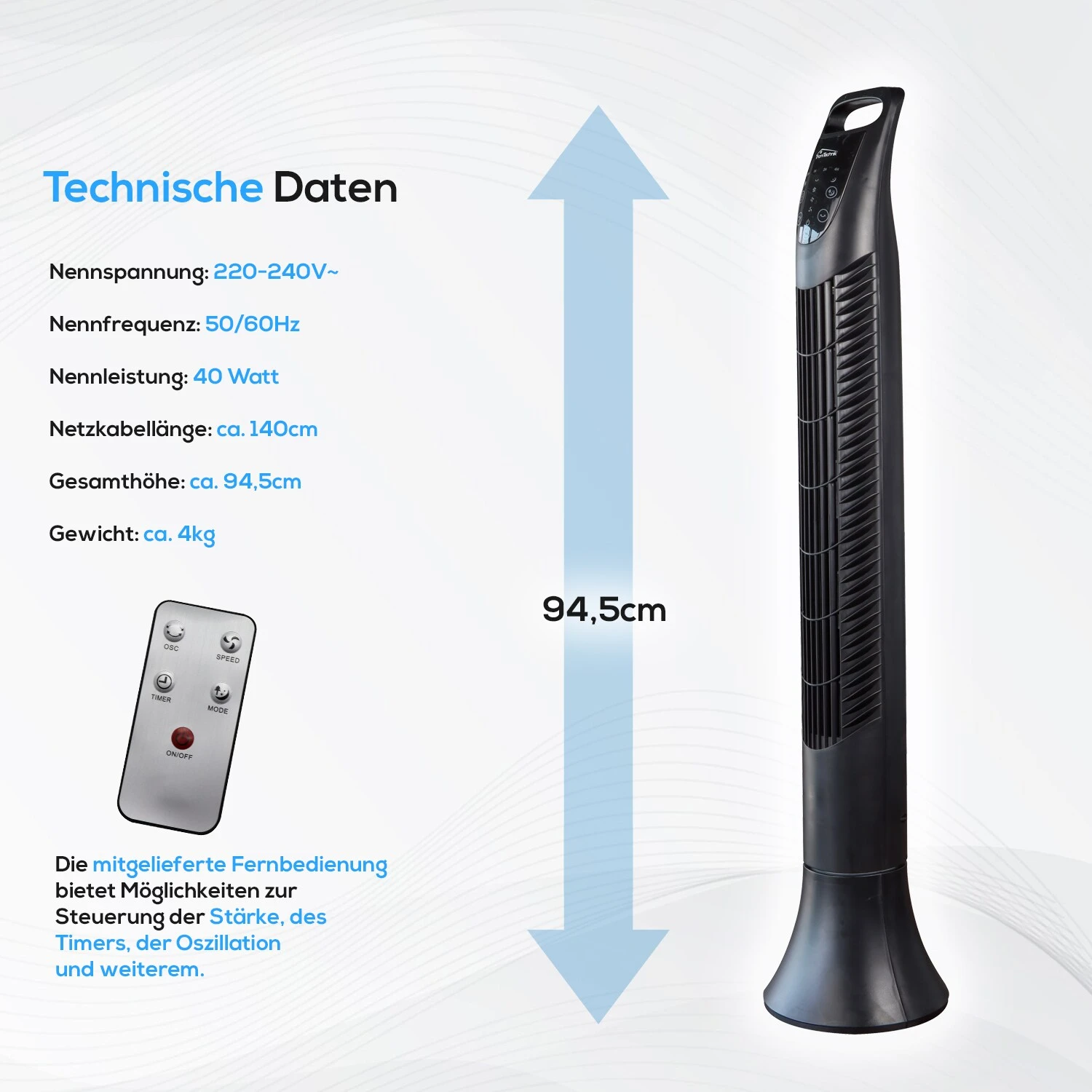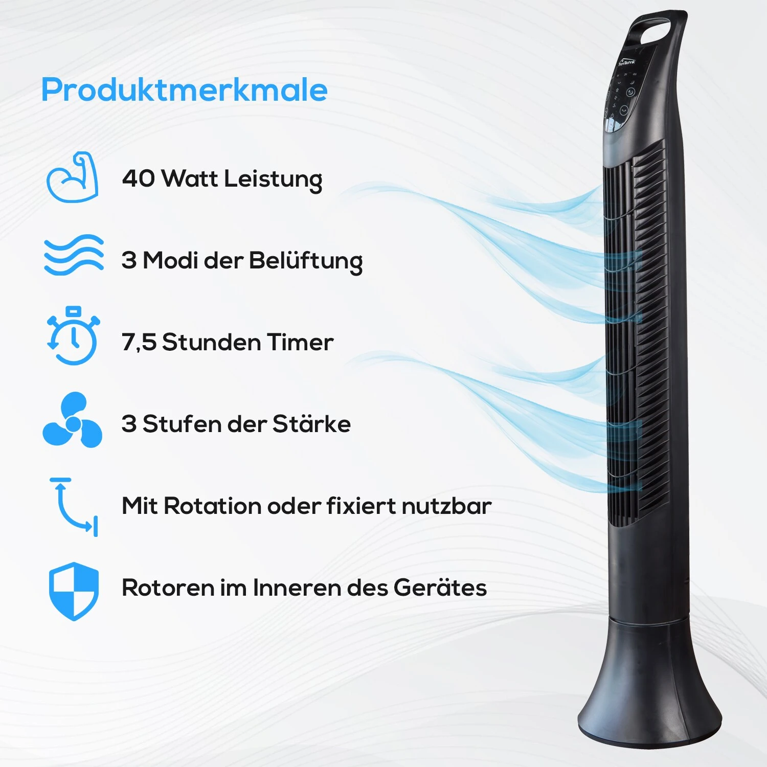 Dieser Turmventilator bietet modernes Design und effiziente Kühlung für die heißen Tage.