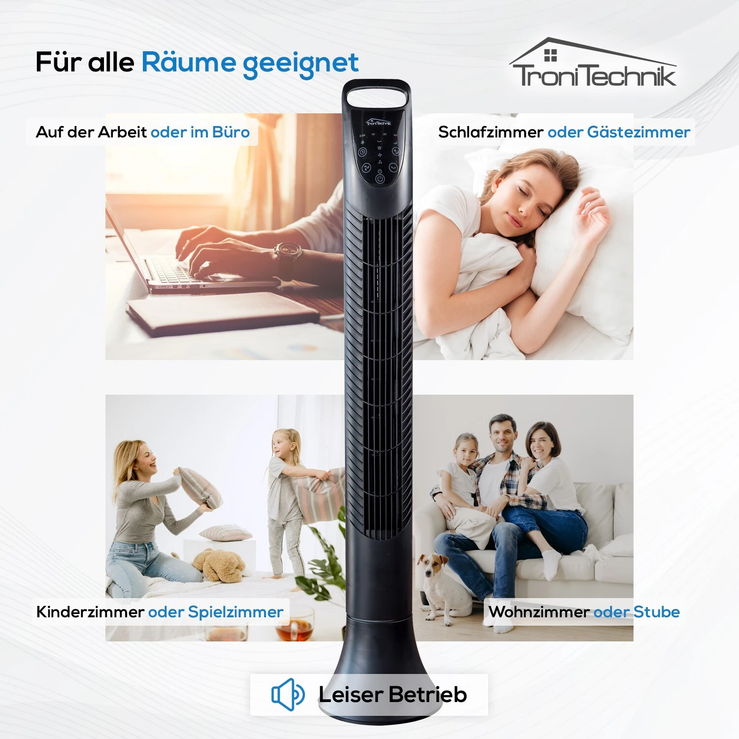Der schwenkende Turm ist leicht platzierbar und lässt sich gut in jeden Raum integrieren – ob im eigenen Zuhause oder im Berufsleben.