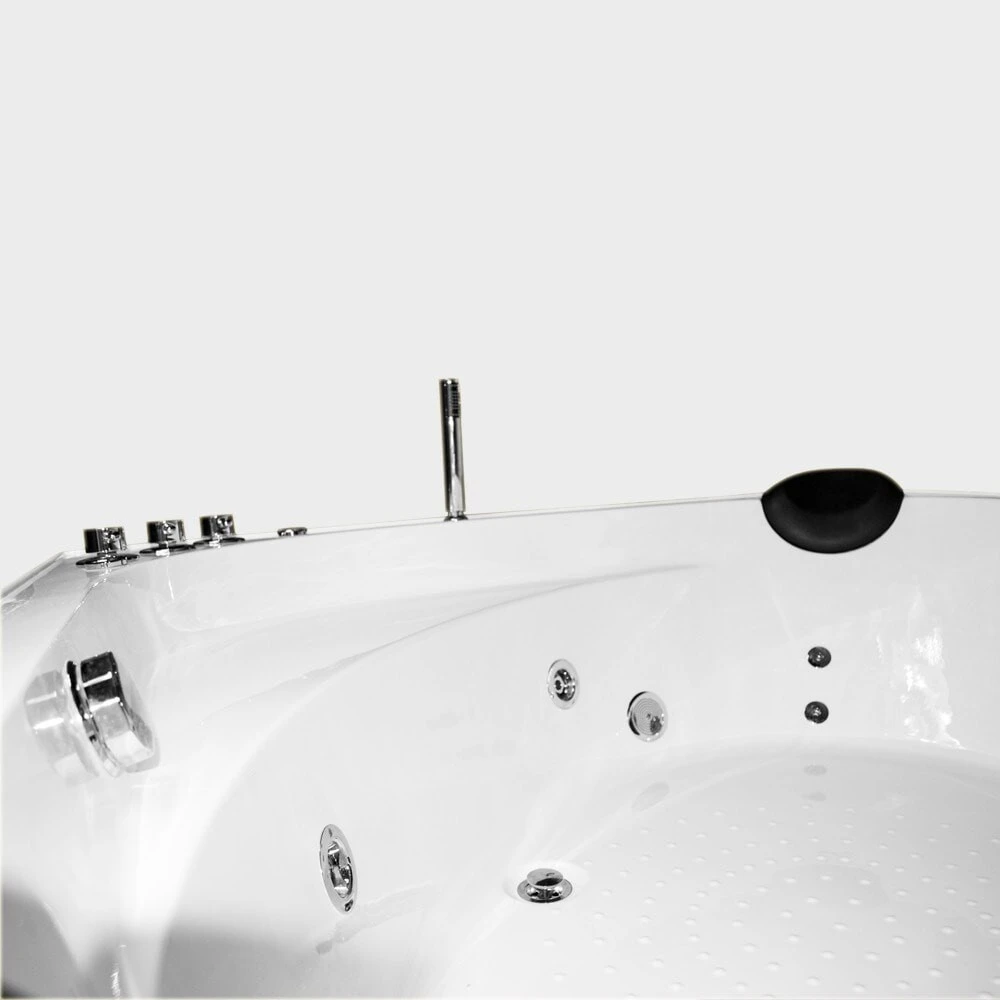 Die Eck- Whirlpool Badewanne PAROS passt aufgrund der kompakten Außenmaße in nahezu jedes Badezimmer. Die im vorderen Bereich eingefasste und bläuliche Acrylscheibe sorgt für ein zeitloses und interessantes Design. Die Wanne wird hiermit zum Blickfang in jedem Raum. Dabei haben Sie nicht nur die beliebten Eigenschaften einer herkömmlichen Badewanne, sondern können über einen Schalter die Whirlpoolfunktion aktivieren.