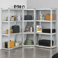 Juskys 3er Metall Regalsystem | 1 Eckregal & 2 Lagerregale | 15 Böden Aus MDF Holz | 2625 Kg
