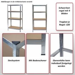 Schwerlastregal MCW-D67, Werkstattregal Steckregal, 160x80x40cm, Traglast Bis 320kg ~ Verzinkt